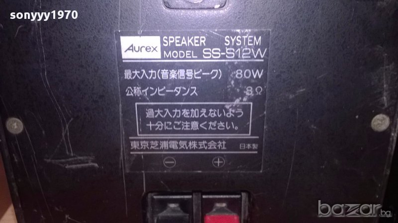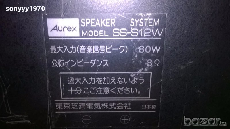 Aurex/toshiba ss-s12w 80watts/8ohms-22/15/12см-метални-внос швеицария...Aurex/toshiba ss-s12w 80watts/8ohms-22/15/12см-метални-внос швеицария...много тежки метални зверчета...без ремонти и с страхотен звук...внесени са вчера от швеицария...80вата...тежки и масивни все едно паве държиш...а как свирят само-пращаме със спиди или еконт с преглед и тест след превод на капаро за куриерската услуга поради зачестили некоректни потребители-поръчки само тук в саита! по телефона и със смс не! краини цени! бартери не правиме! ПАРИ НЕ ВРЪЩАМЕ! всеки ден нови неща-още 2-3 наши обяви тук