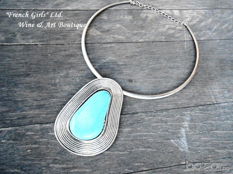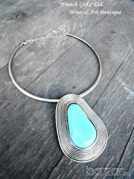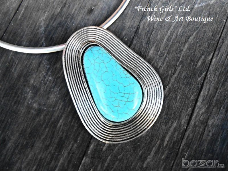 Метално дамско колие с висулка от тюркоаз → Обява 15664794