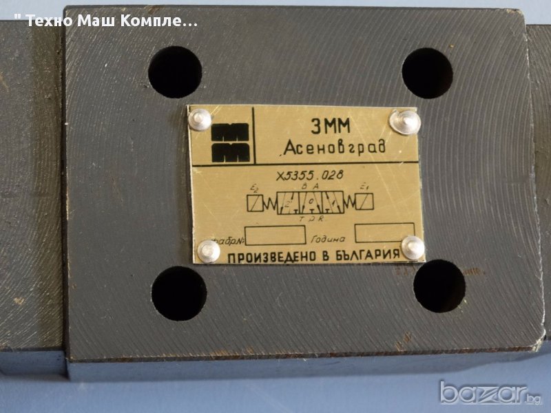 Фирма "Техномашкомплект" ЕООД предлага широка гама (руски, български, чешски, полски) хидравлични разпределители с електромагнитно управление. 1. тип Х5355.028 24 V