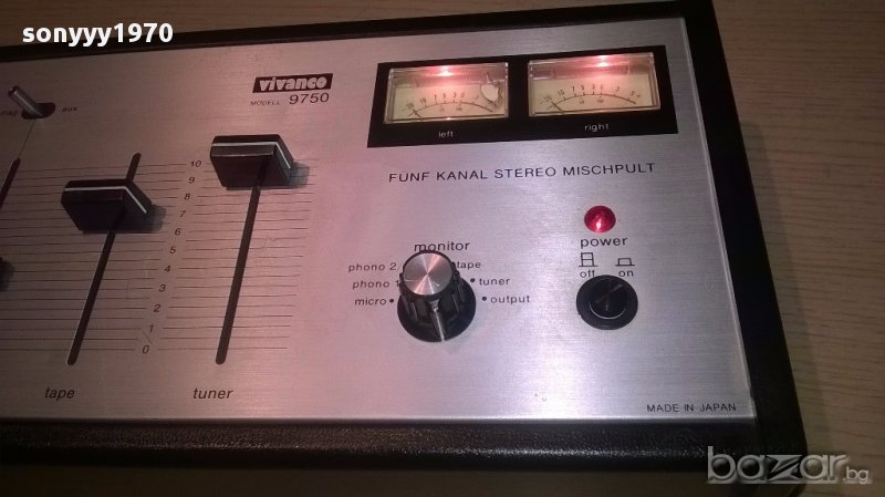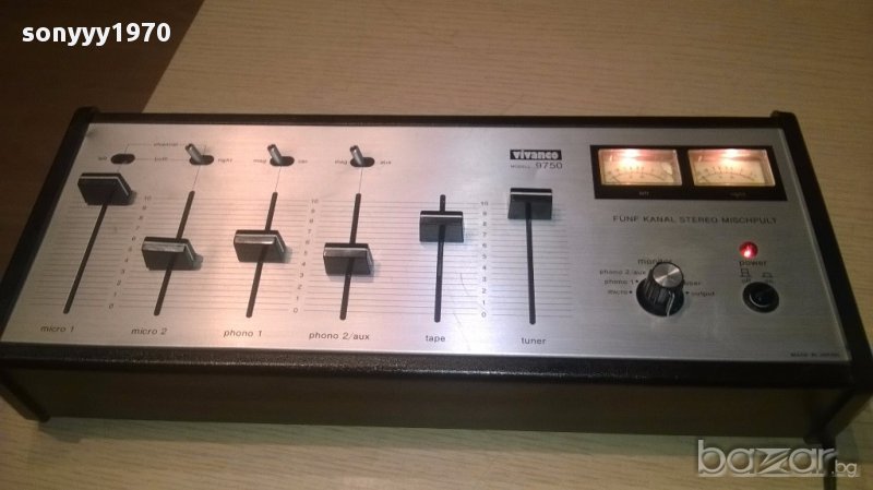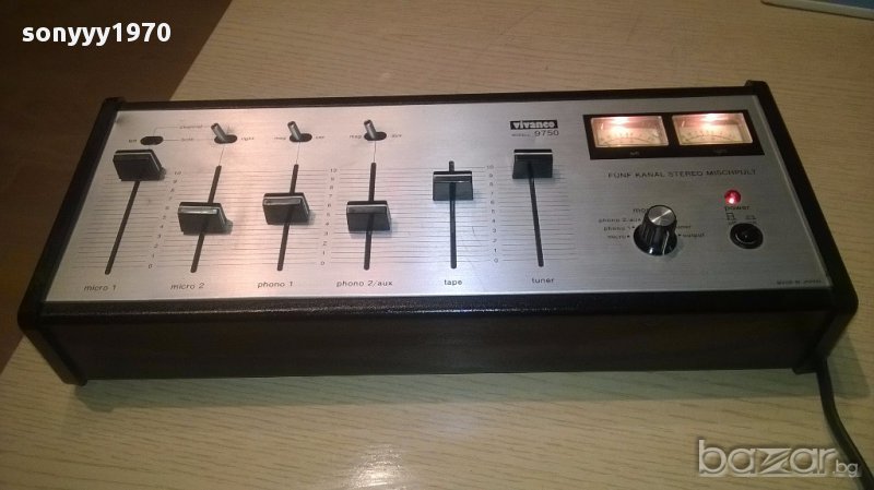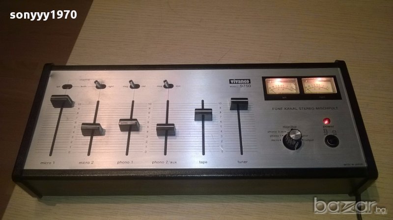 9750-mixer-музикантски мишпулт-внос швеицария...за микрофони за грамофон и още входове...работи идеално...нов внос...с стрелкови индикатори е...работят и светят...дребни забележки-от днес 28.02.22г пращаме със спиди или еконт с преглед и тест след превод на капаро за куриерската услуга поради зачестили некоректни потребители-поръчки само в тук в саита! по телефона и със смс не! краини цени! бартери не правиме! всеки ден нови неща-още над 18000 обяви тук