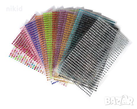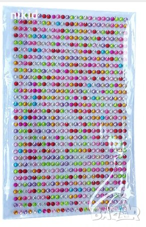нови лист с многоцветни или едноцветни ситни камъчета с лепило,готови за залепване на желано място