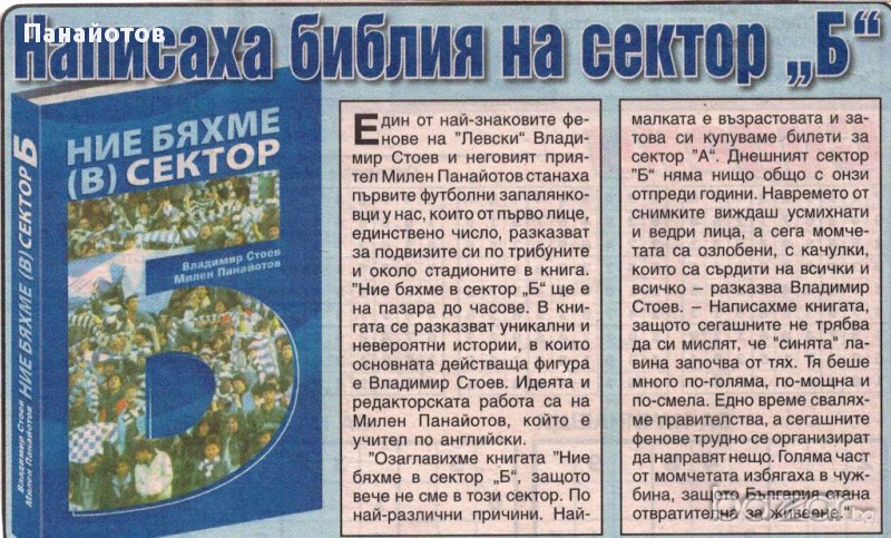 Първата по рода си книга в България написана от футболни запалянковци за футболни запалянковци. Мемоарите на двамата автори заемат цели 376 страници