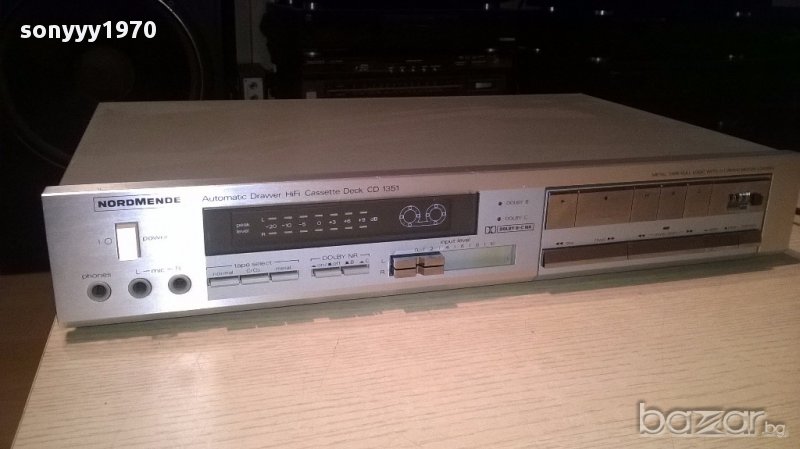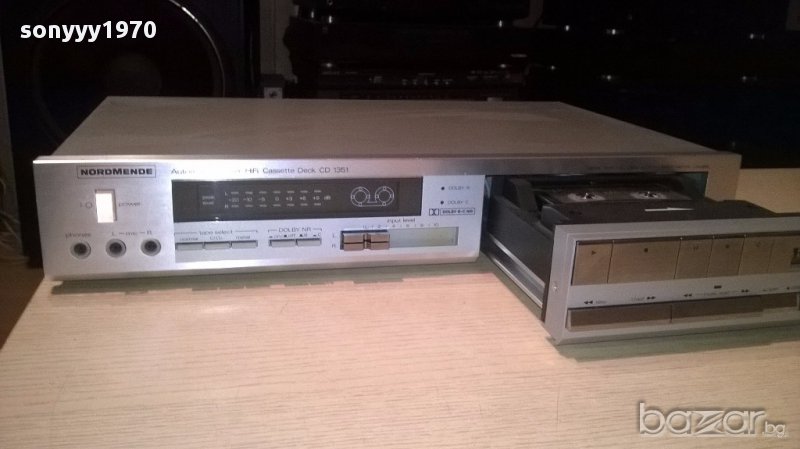 NORDMENDE cd1351 automatic drawer hifi deck-внос швеицария...като нов...класна и маркова машина...тежка истинска...работи и има и индикатори и за нивото и за лентата...чекмеджето се отваря и затваря с бутон...леко е хлабав ремъка-нормално за годините и изключва...без ремонти е и е внесен вчера-от днес 28.02.22г пращаме със спиди или еконт с преглед и тест след превод на капаро за куриерската услуга поради зачестили некоректни потребители-поръчки само в тук в саита! по телефона и със смс не! краини цени! бартери не правиме! всеки ден нови неща-още над 18000 обяви тук