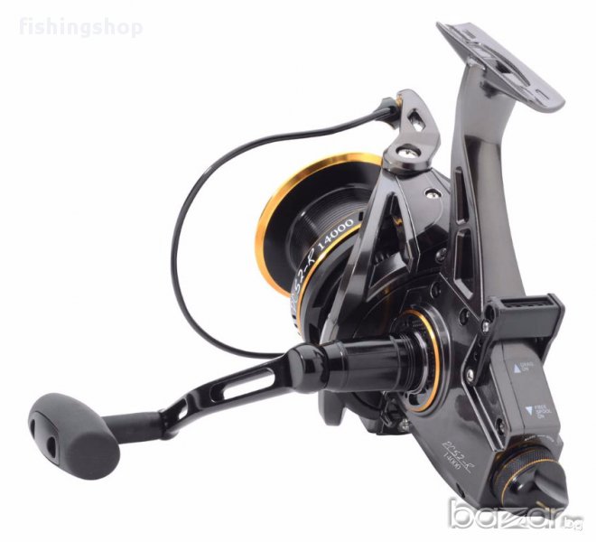 Спирачната система поставя нови стандарти: водоустойчивата въглеродна предна спирачка достига спирачна сила от невероятните 27 кг!Лагери - 12 + 1Тегло - 875 грамаРазмер - 10000Спирачни сила - 27 кг. Капацитет - 0.35 мм / 400 м. Единична манивелаПревод - 5.3: 1Графитно тялоРезервна шпула - неProduct details:12 high-tech ball bearings + 1 One Way Clutch roller bearing, Extreme reinforced stainless steel shaft (Models 4500 & 6500: 5,5mm axis / 10,000 & 14,000: 6,5mm axis), freewheel lever including recording for Betalights 4 x 20 mm, water resistant front brake system with carbon discs, 27kg maximum braking force, stutter finely adjustable freewheeling, distortion-free graphite housing, Thick Bail anti twist line roller with stainless steel ball bearings, Screw in CNC handle with non-slip power Knauf, massive Distance Cast aluminum spool including 2 Line clips, and and and...