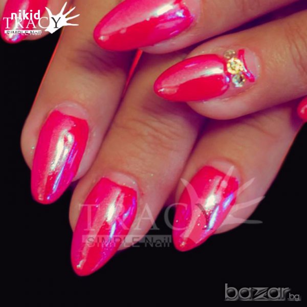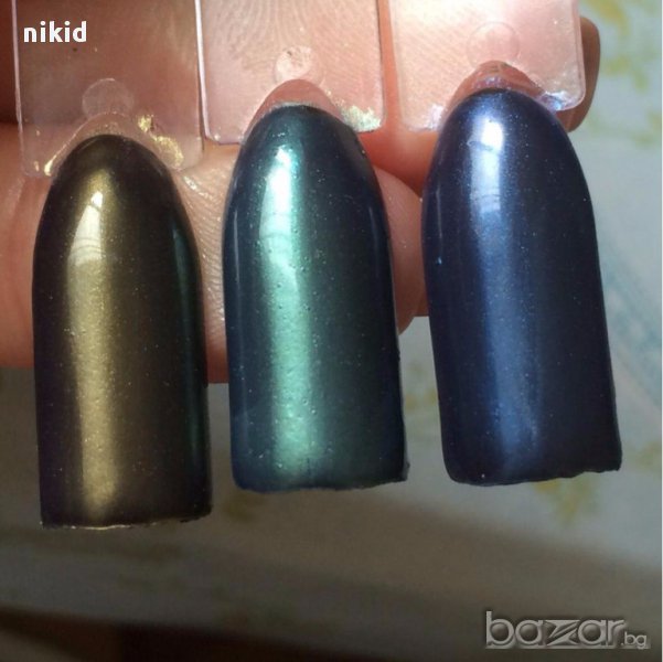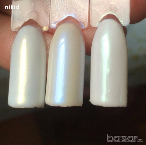 НА ПОСЛЕДНИ снимки е показан ефект върху бял лак, и върху черен лак.Резултата е различен ,спрямо цвета лак.