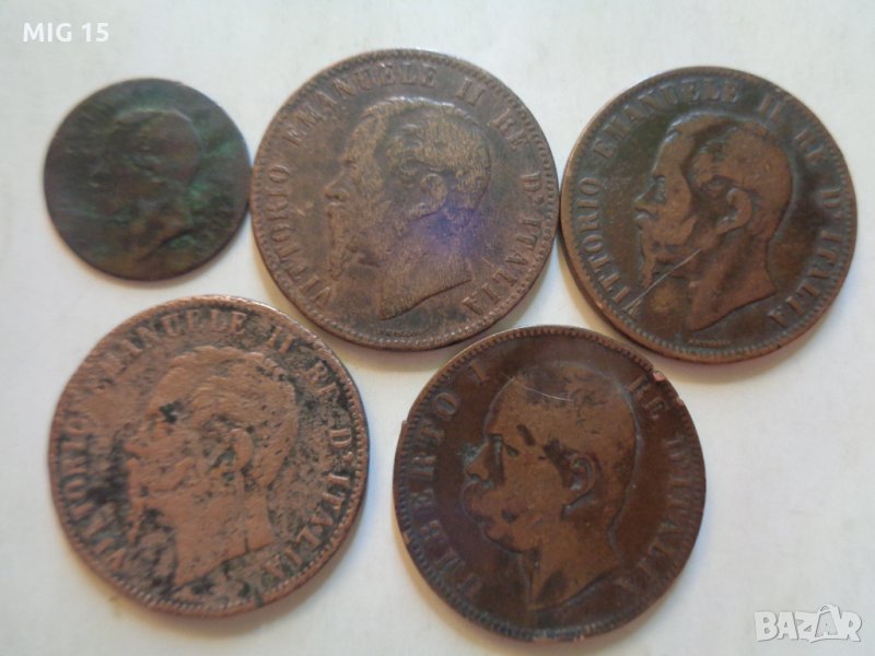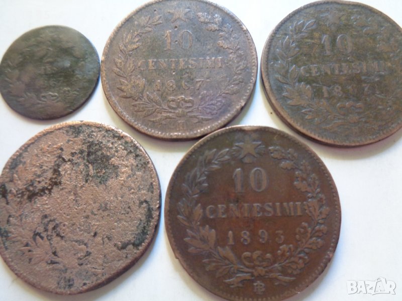 -Италия - 2 чентезими 1867. 10 чентесими 1867 (на снимката са 2 броя - едните са ПРОДАДЕНИ), 1887, 1895 (ПРОДАДЕНИ).