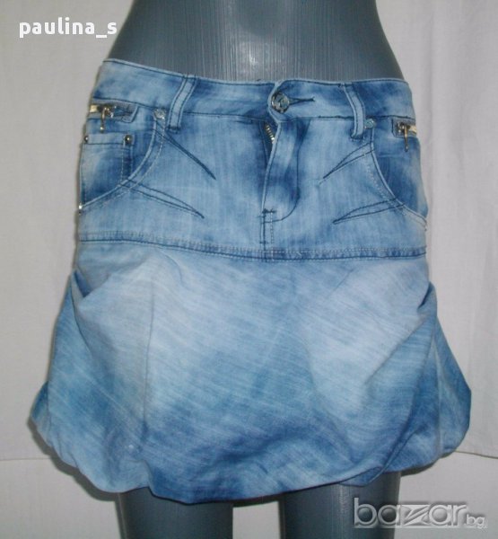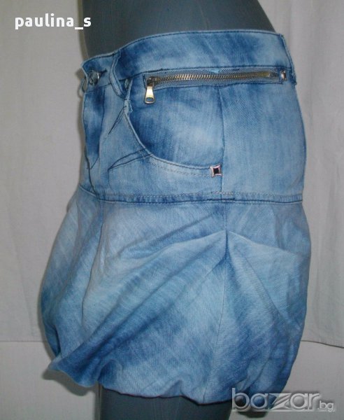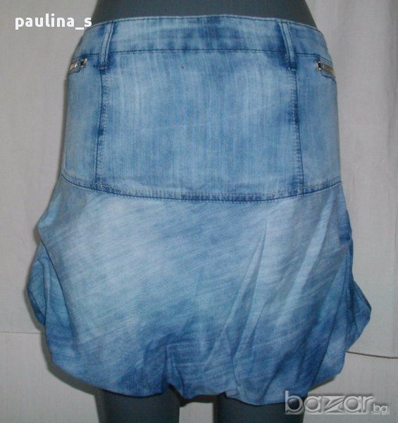 1. "Franco Callegari" Дънкова пола с много разчупен модел. Цената е крайна 22,99лв. Джобовете са маркирани с фиксиращи басти и ципове. Долната част е веревно скроен балон с фиксираща вътрешна платка и ластик. Стои прибрано и много секси. Артикулът е без забележки.