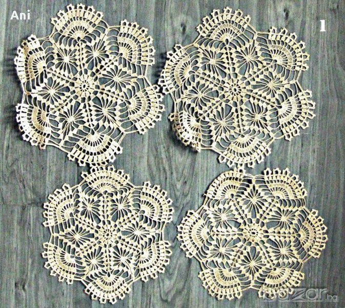 1. Комплект от 4 бр. карета с диаметър 25 см., цвят екрю и цена 20 лв. бройката.