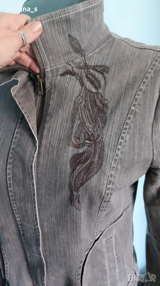 1️⃣. M / L / "Vila". Цената е крайна, без пазарлъци 39,99лв / 20 евро. ВИНТИДЖ! Дамска дънкова парка / манто с хастар и с фиксиран ханш. Коланът е разположен на ханша. Отпред и на десния ръкав има бродерии и апликации с флорални мотиви. Ръкавите завършват с ципове и са с украсителни платки. Джобовете са на нивото на талията още с фабричните тегели, а долу е по-разкроена, но не стърчаща. Има изразен избелващ ефект около украсителните тегели и краищата, платът е релефен, разкошна! Моделът е супер специален и доста интересен.
