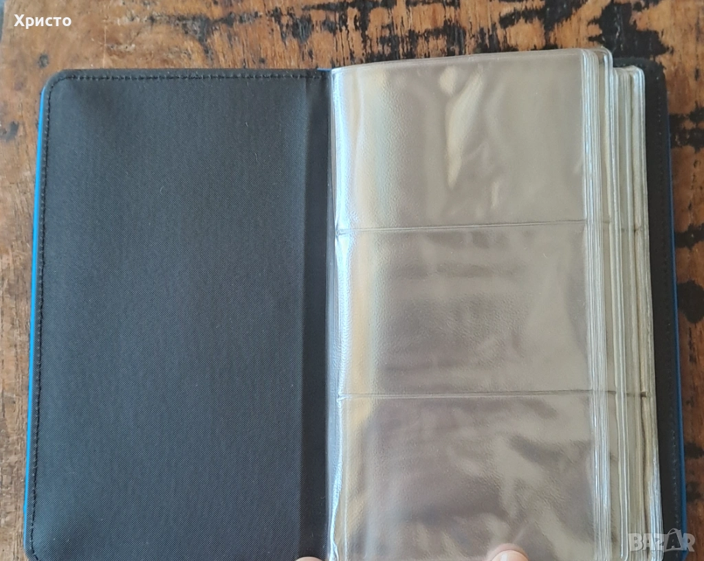 Снимки 15-17 : син визитник ПВЦ, размер 19,2х11,5 см, 3 реда визитки, за 120 визитки - цена 10 евро