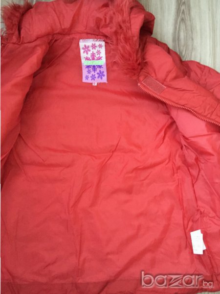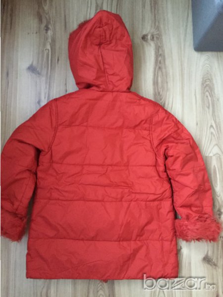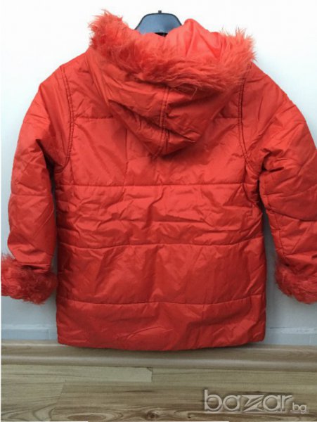 Детско яке LC WAIKIKI, за 8г/128см, с пухчета на качулка и ръкавите, отвътре с вата, коралов цвят → Обява 15855686