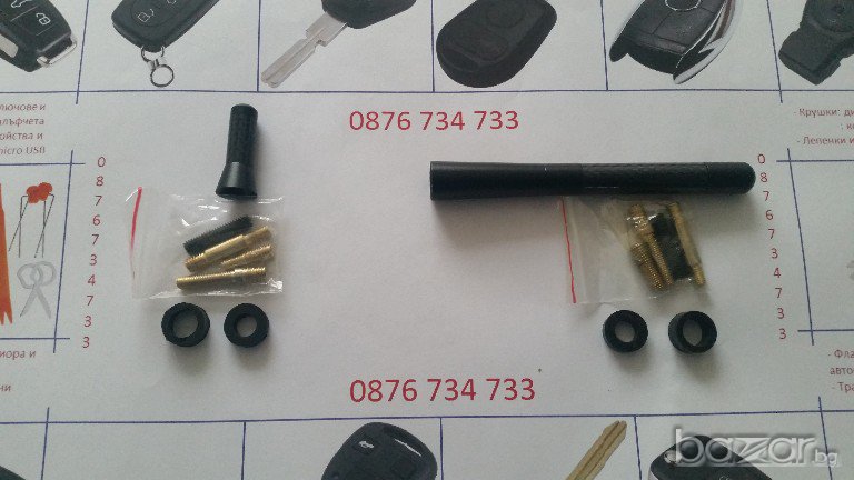 Малки удобни и практични антени за автомобил. Антенките са с различни накрайници според монтажа на вашия автомобил.