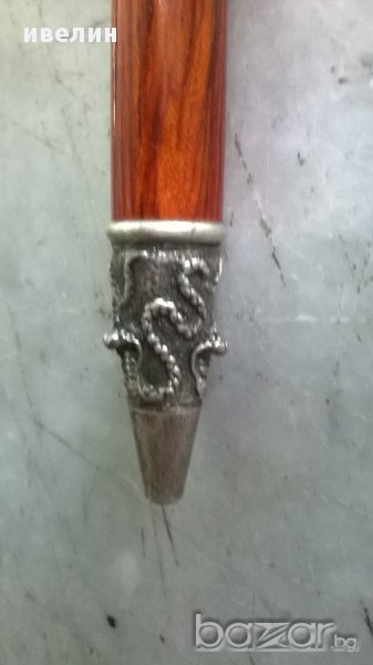 стар ювелирен химикал.дървен корпус с метални декорации.възможно е да са сребърни /не съм ги тествал/.дължина 14см.