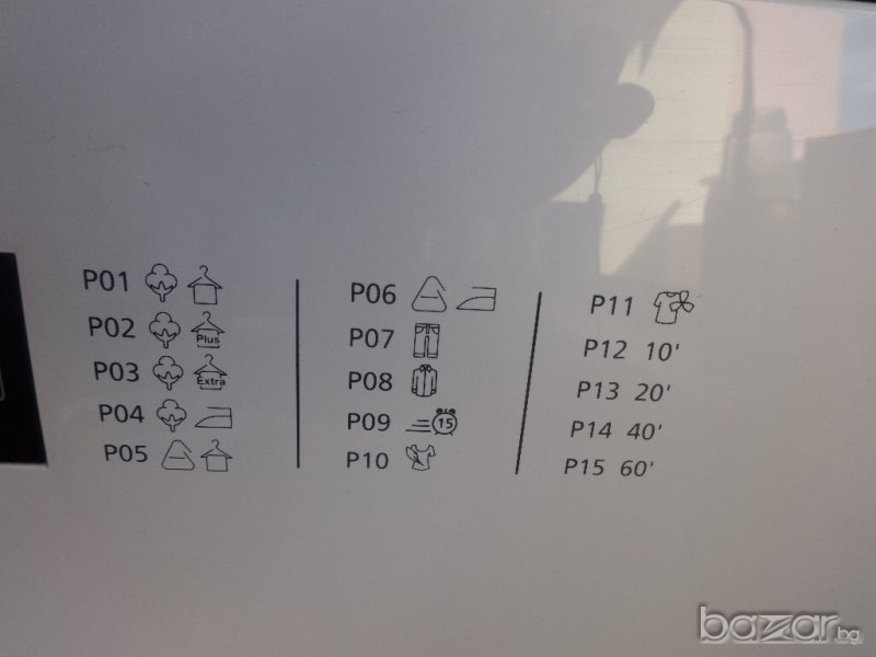С тъч скрийн, 15 програми, отложен старт, сензори за влага, препълване на контейнера и други.