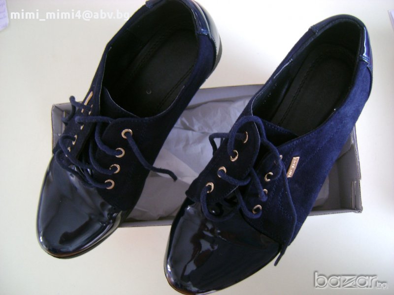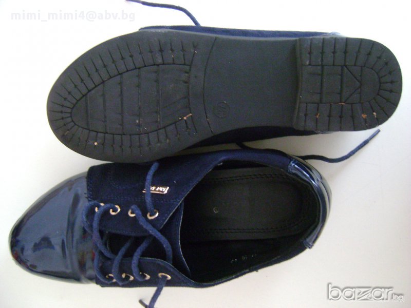 Обувките са обувани 2-3 пъти.Цвят тъмно син.Лак и велур.№37
