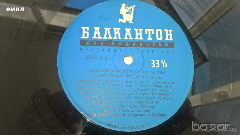 балкантон първи международен оперен конкурс за млади оперни певци 235/6/7 каталог с плочи книга