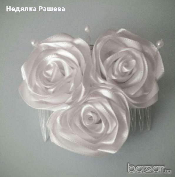 Гребенче(7 см) със сатенени рози подходящо за сватбена прическа,шаферки или друг официален повод.Цветът е по избор.