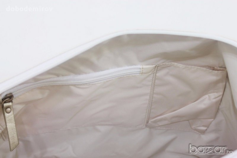 Една основна част с вътрешен джоб с цип, две кожени дръжки, лого на бранда в предната част, метални крачета за удобство, твърдо дъно.