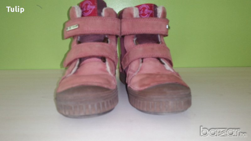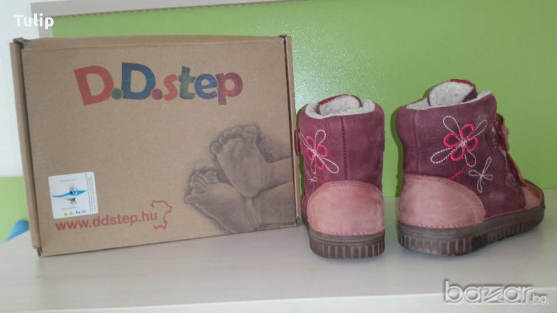 Ботички на марката D.D. step, малинов цвят от естествена кожа с дебела пухкава подплата, не пропускат, хубав грайфер, запазени в отлично състояние с лепки за лесно обуване на крачето, дължина на подметката - 19 сm. дължина на стелката 18 сm. Намалям ботите на 20 от 25 лева