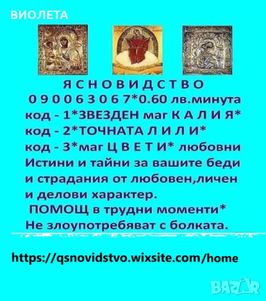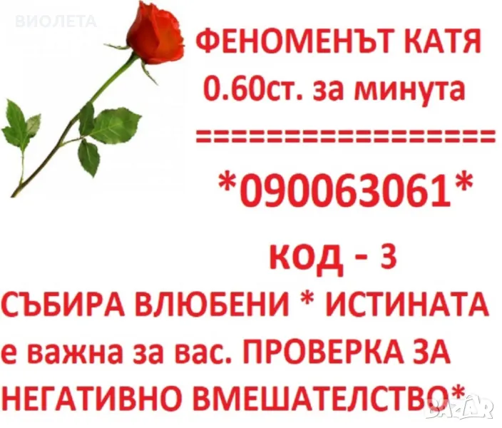 090063067 код 1*** ПРОРОЧЕСТВОТО НА КАЛИ,С ДОКАЗАНИ СПОСОБНОСТИ.Психологическа подкерепа и анализ! Истини и тайни от раждането до момента , вашата съдба , как може да се промени,вашите страдания и беди през погледа на ТОЧНАТА АНИ**** ПРОГНОЗИ ЗА МЕСЕЦА И ГОДИНАТА. КАК ДА СЛЕДВАТЕ ВАШИТЕ УСПЕШНИ ПЕРИОДИ ЗА ПОСТИГАНЕ НА УСПЕХ И ХАРМОНИЯ В ЖИЗНЕНИЯТ СИ ПЪТ. ИСТИНИ И ТАЙНИ С КАРТИТЕ ТАРО КОИТО ВЛАДЕЕ ДО СЪВЪРШЕНСТВО. САМО ПО ТЕЛЕФОНА. 0.60 лв. за минута