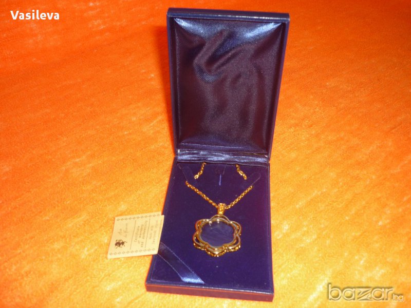 -Позлатено бижу със Сваровски кристали - Art de France. Позлатена верижка – 40см, двойна стабилна и красива плетка; бижу кръгло 5 см, инкрустирано с камъни, с вградена лупа, сертификат за Сваровски кристали, луксозна кутийка- 80лв