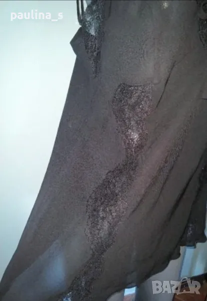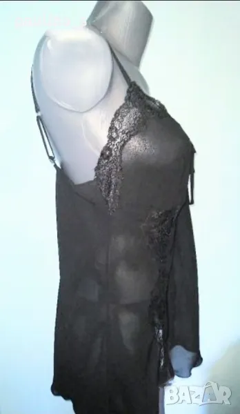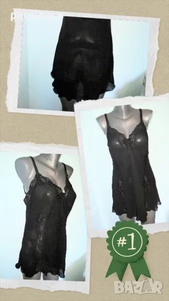 2️⃣. Колаж / Туника / Топ / Бюстие - Германия "ТСМ" / 42 - 44EU. Цената е крайна 29,99лв / 14,9евро. Магнетично красива нощница с бюстие или топ, по желание на притежателката. Моделът е с бюстие в горната част, леко разкроен долу. Декорациите са от еластична дантела с дискретен блясък. Материята е копринен шифон, а кройката позволява да се носи от няколко размера, използва се от радиалната еластичност на плата. Презрамките се регулират по дължина.