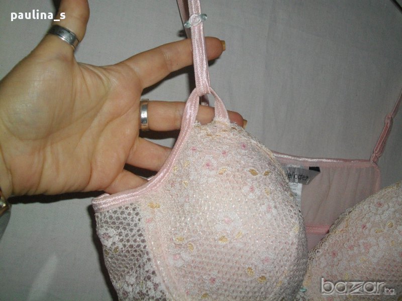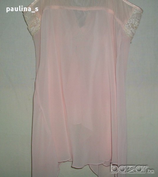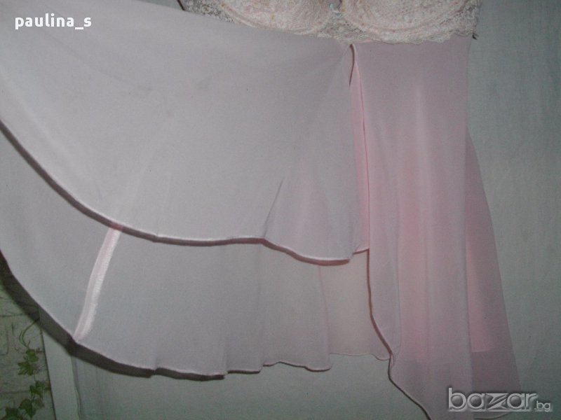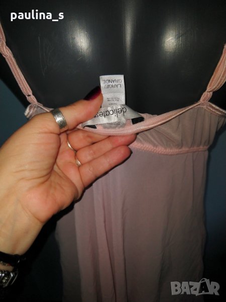 1️⃣. ПРОДАДЕНА / "Delicates" large. Цената е крайна 29,99лв / 15 евро. Дамска секси нощница в нежно розов цвят, горната част е като при сутиените с банели и подплънки, долната част е от веревно скроени асиметрични части, които се преплитат отпред и придават допълнителен сексапил на дрехата. Презрамките се регулират, чашка С, отзад горната част е от прозрачна еластична.