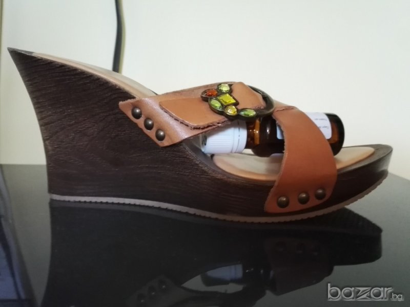 Дамски чехли платформа S.Oliver 39 номер,отговарят на 38-ми,естествена кожа.Стелка 25,5см.Високи 9,5см.