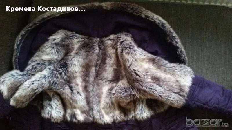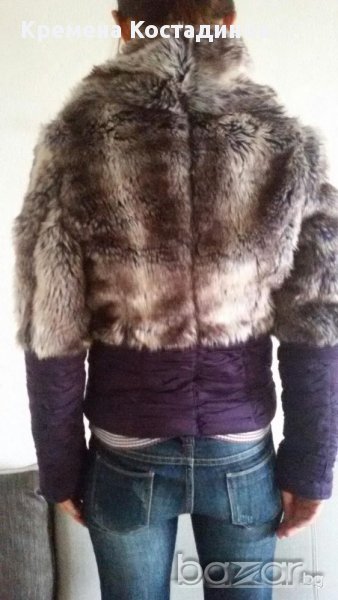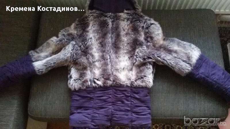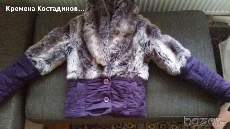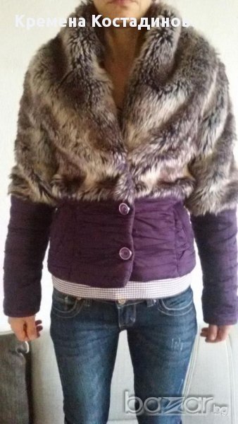 от плат и изкуствен косъм. Якето е зимно и без следи от употреба. По етикет размера е 40/С - българска номерация.