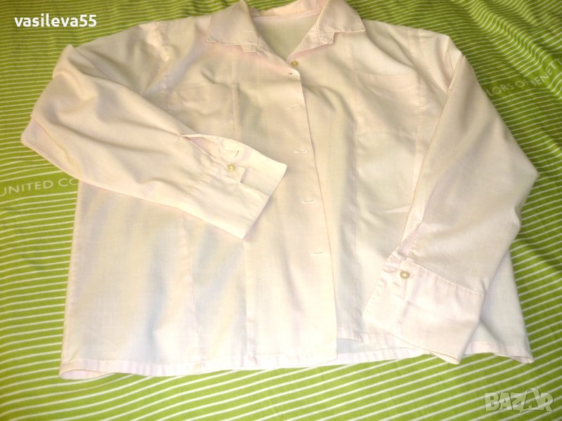 -Спортна, бяла, памучна риза, размери – дължина 64см; бюст 108см, талия 100см; ханш 110см, 4 евро