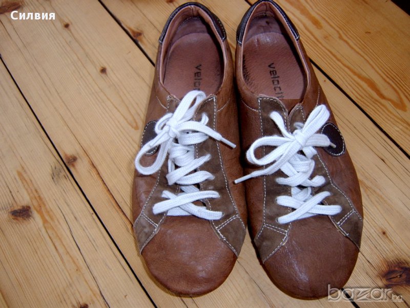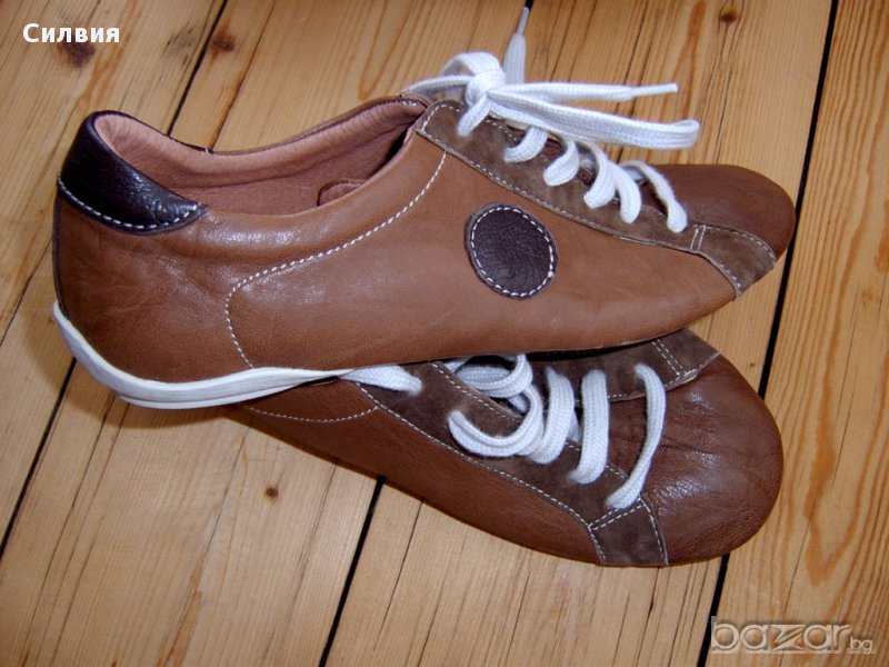 Изключително меки и удобни обувки, изцяло от естествена кожа - отвън и отвътре. Кафява кожа с намачкан ефект. Изработени на ишлеме за Италия, изцяло с италиански материали. Почти не са носени, обувани 2-3 пъти, което се вижда и на снимките. Отлично състояние.