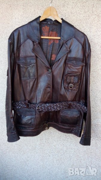 Тъмно кафяво палто от еко кожа на марката Ze Ze, с размер S. Точни мерки: обиколка на гърдите 120 см, обиколка талия 124 см ,обиколка ханш 128 см, дължина на палтото 92 см, дължина на ръкава 60 см, от рамо до рамо 47 см и с цена 50 лв.