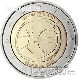 2 Евро монети (възпоменателни) емитирани 2009г (10г. на Икономически и Паричен съюз) Всички монета са не циркулирани (UNC) взети са директно от банкови ролки.