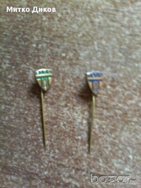 Значките са три с цена от 3лева са две като едната е с със синкав другата със зеленикав оттънък-стари значки от соца на ДФС Хасково-последната на четвърта снимка е по-нова -в перфектно състояние независимо че не е излязла добре на снимката--4лв-флагчето с цена от 5лв е 165 мм на 120мм -изпращам по еконт с отстъпка