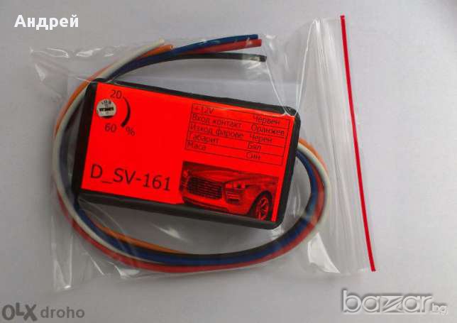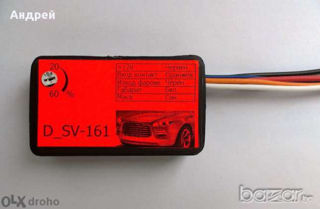 Предлагам модули за автоматични дневни светлини. Подходящи са за автомобили с управление по "+". Могат да бъдат свързани към дълги или къси светлини. Лесен монтаж. Без допълнително програмиране. Възможност за регулиране силата на светене от 20 до 60%. Модула се захранва след контактния ключ и не консумира енергия при загасен автомобил. Следи напрежението на акумулатора. Прага на включване е 13,3V. При запалване на автомобила модула изчаква 5S и запалва фаровете плавно. Плавния старт предпазва крушката от големия моментен ток при студен старт и удължава значително живота и. След достигане на максималното зададено светене издава кратък звуков сигнал - потвърждение че работи. При пускане на светлините от ключа на автомобила, автоматично се изключва. Модула е предназначен за автомобили с обикновени нажежаеми крушки. Може да се използва и за управление на LED крушки (светлинни модули), без вградена в тях електроника. Доставя се с описание за работа, настройка и монтаж (монтажна схема). Цена 15€.