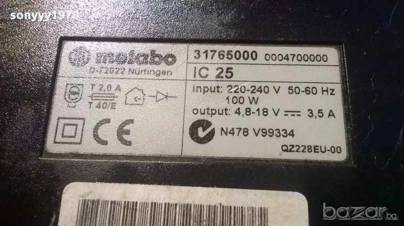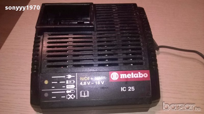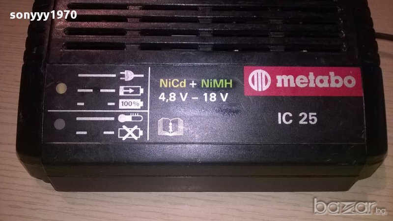 Metabo ic25 profi 4.8-18v charger nicd/nimh-внос швеицария...голямо марково истинско профи зарядно за уреди на марката...тествано и е ок...нов внос-поръчки само тук в саита! от днес 28.02.22г пращаме със спиди или еконт с преглед и тест след превод на капаро за куриерската услуга поради зачестили некоректни потребители-поръчки само в тук в саита! по телефона и със смс не! краини цени! бартери не правиме! всеки ден нови неща-още над 18000 обяви тук