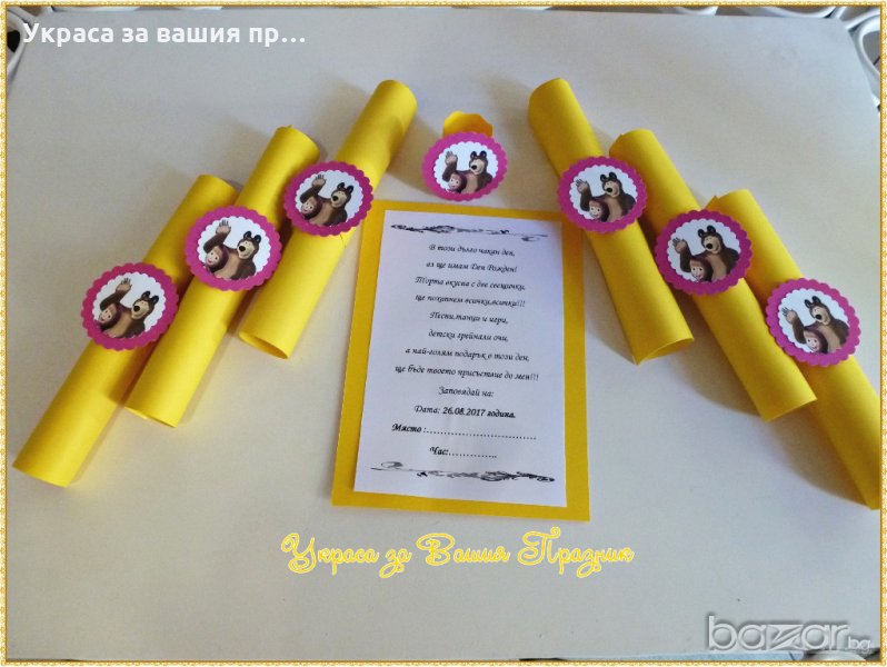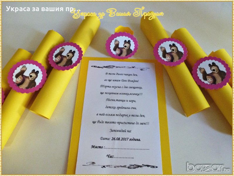 покани с Маша и мечока Winks снимка на детето Мики Маус за детски рожден ден → Обява 16020384
