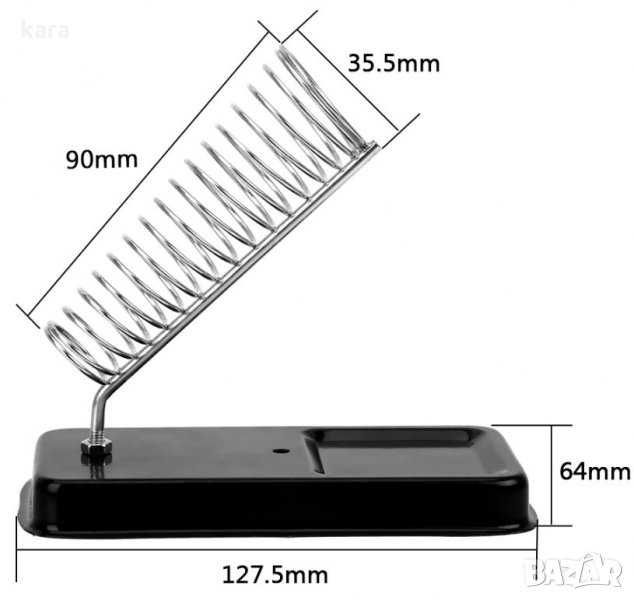 Стабилна метална основа на пружинния държател за поялник с легло за гъбичка. Тегло103 г, размери 13x7,8x3,5 см