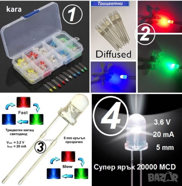 Nr.2 Комплект 10 бр RGB трицветни светодиоди - 6 лв