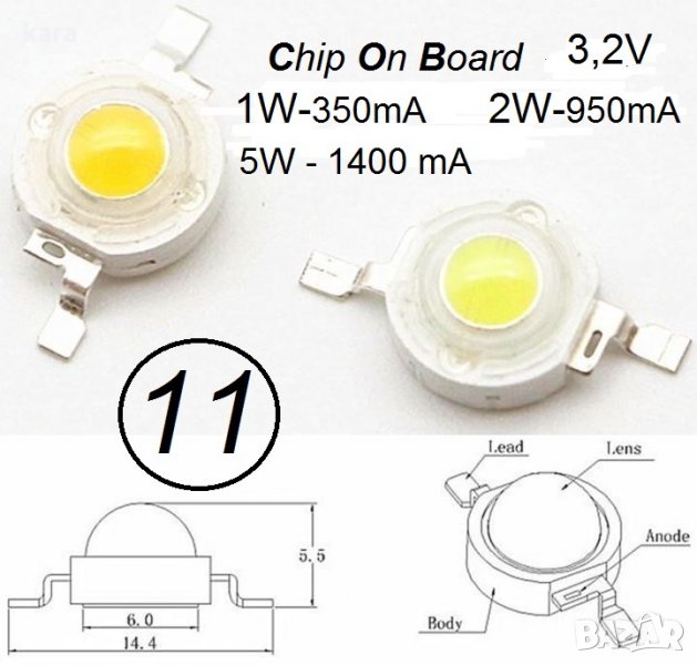 Nr.11b - COB светодиод 3W ярко бял - 2 лв