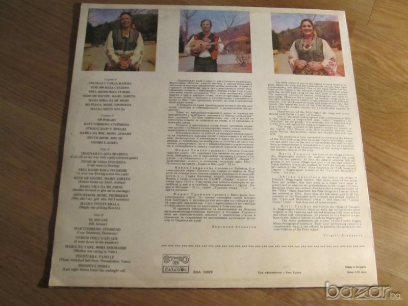 Грамофонна плоча Пирински народни песни изд.70те. за колекционери и ценители на старата хубава народна музика !