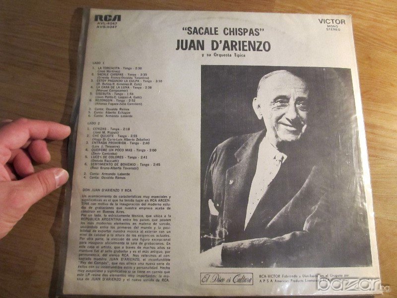 Грамофонна плоча JUAN D ARIENZO - издание 70те. за колекционери и ценители на старата хубава музика !