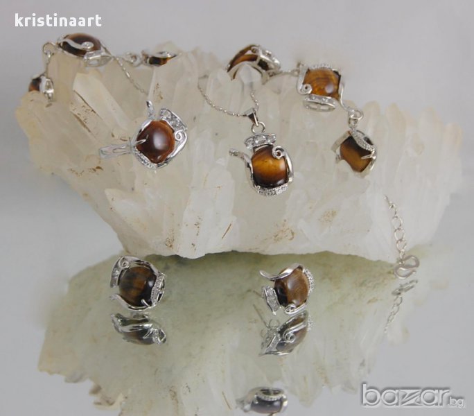 Комплект от медальон,синджир,гривна,обеци и пръстен от тигрово око.