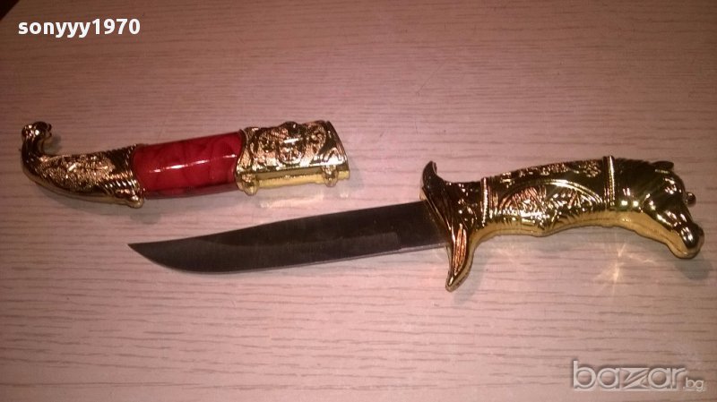 Красив нож за украса/колекция-22/6см-внос швеицария,Сувенирен нож...метално острие и пластмасова дръжка...нов внос...красив и стилен...за колекция украса/декорация-от днес 28.02.22г пращаме със спиди или еконт с преглед и тест след превод на капаро за куриерската услуга поради зачестили некоректни потребители-поръчки само тук в саита! по телефона и със смс не! краини цени! бартери не правиме! всеки ден нови неща-още 2-3 наши обяви тук