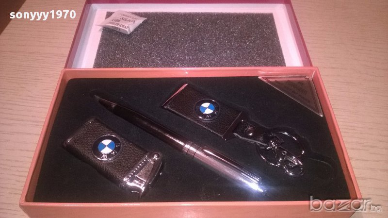 Bmw-луксозeн подаръчен комплект 20/12см-внос швеицария...красив и стилен...нов..запалката е с реотан и вятъра не е фактор...метални всички...ключодържатела и запалката са в черна кожа...класа и стил-от днес 28.02.22г пращаме със спиди или еконт с преглед и тест след превод на капаро за куриерската услуга поради зачестили некоректни потребители-поръчки само в тук в саита! по телефона и със смс не! краини цени! бартери не правиме! всеки ден нови неща-още 2-3 наши обяви тук