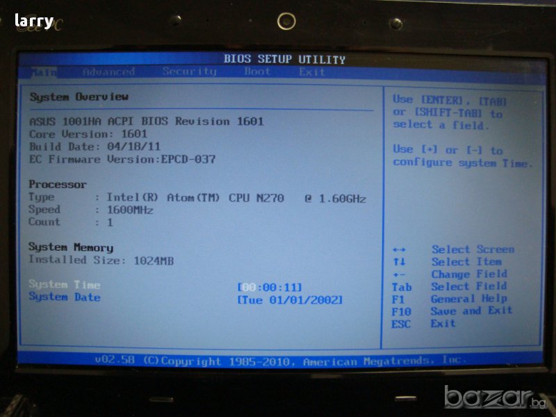 Продавам лаптоп Asus Eee PC 1001HA на части. Останаха само: Дънна платка: Asus 08G2005HA13J 60-0A1WMB1000-A02 (работеща + процесор Intel N270 - 60лв