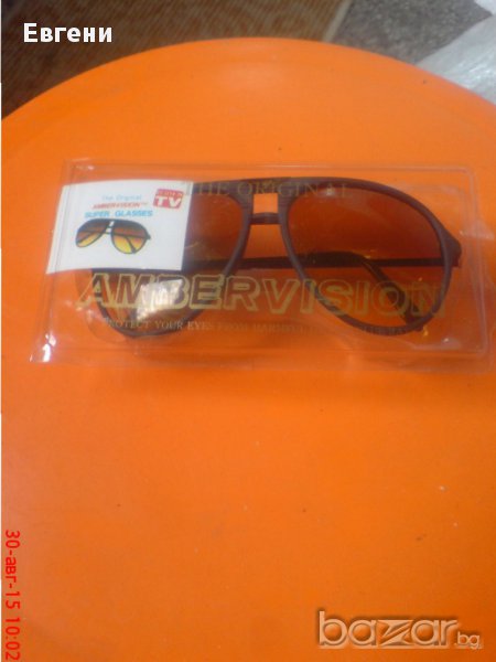 Американски слънчеви очила амбервижън със жълти стъкла оригинални за слънце и при шофиране в мъгла със 99 процента ув защита от слънцето. Подобряват визуалния комфорт по време на шофиране и допринасят за отчетливото разпознаване на обектите, за перфектна яснота на смрачаване Намаляват вероятността от заслепяване, причинено от фарове и улично осветление Подобряват видимостта при здрач и при лоши атмосферни условия Защитават вашите очи от вредните ув и сини лъчи така пише на английски на опаковката. Към комплекта очила има калъф кожен черен пвц кутийка в която се намират. Имат реклама в ю туб.За количества отстъпка.