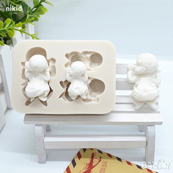 силиконов молд форма бебе 3 бебета за пита кръщене украса торта с фондан шоколад → Обява 16134607