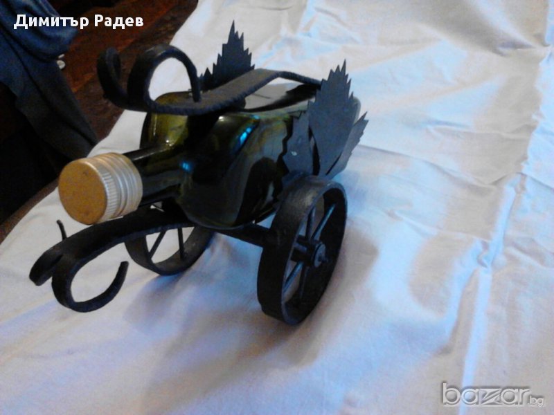 Стойката е от ковано желязо. Оригинална и стилна! Чудесен подарък! Шишето е празно, пълно е с въздух най-добре е, който вземе това бижу да изгони въздуха от шишето. :На ЗДРАВЕ.Ц--НА 50ЛВ