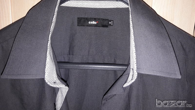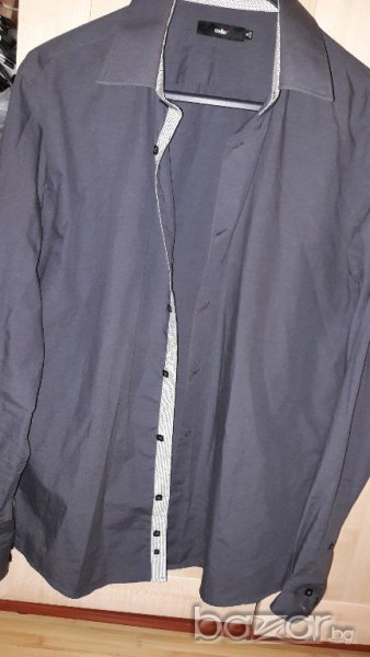 Мъжка модна риза с дълъг ръкав Celio, много тъмен сив цвят с бяла яка на точки около врата и маншети в същия цвят. Ризата е много красива, нова, само е пробвана. размер М / №39-40 около врата, рамене 44-45 см, гърди отпред 51 см /обиколка 101 см, дължина 65-66 см, ръкав 62 см. Отговарям на съобщения тук, изпращам с куриер с отстъпка, преглед и тест, или лично предаване в София.